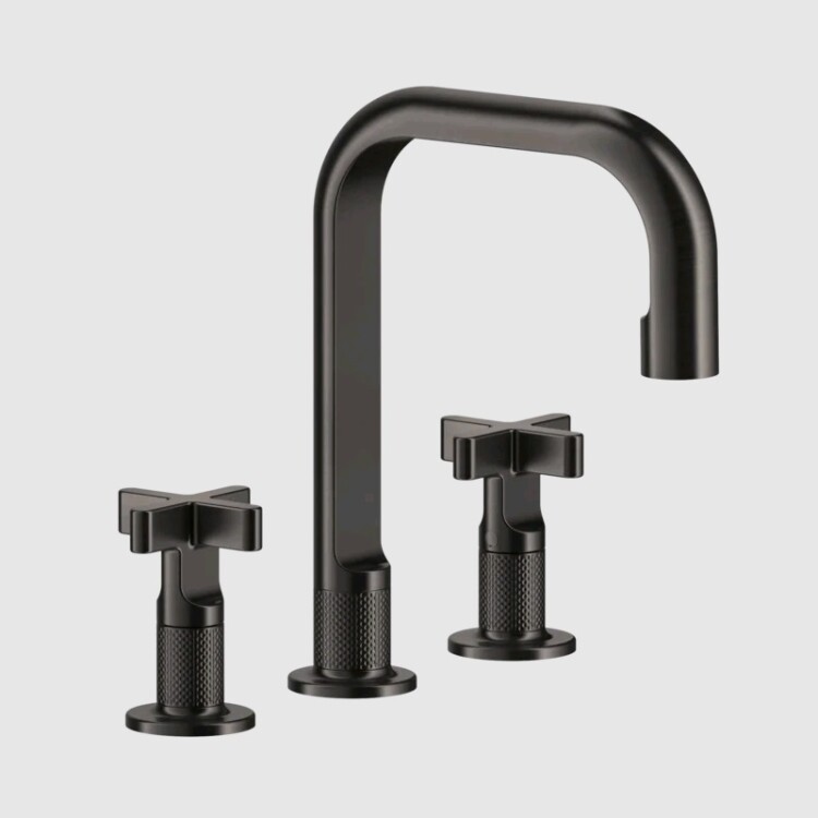 Смеситель для раковины, Gessi, Inciso, тип открывания воды-вентильный, тип регулирования воды-керамическая кран-букса, монтаж-на раковину/столешницу, отверстия для монтажа-3, высота, мм-240, вынос излива, мм-160, тип излива-неподвижный, донный клапан-отсутствует, тип подводки-гибкая, стандарт подвода воды-3/8", цвет-Black Metal Brushed PVD Смеситель для раковины, Gessi, Inciso, цвет-Black Metal Brushed PVD