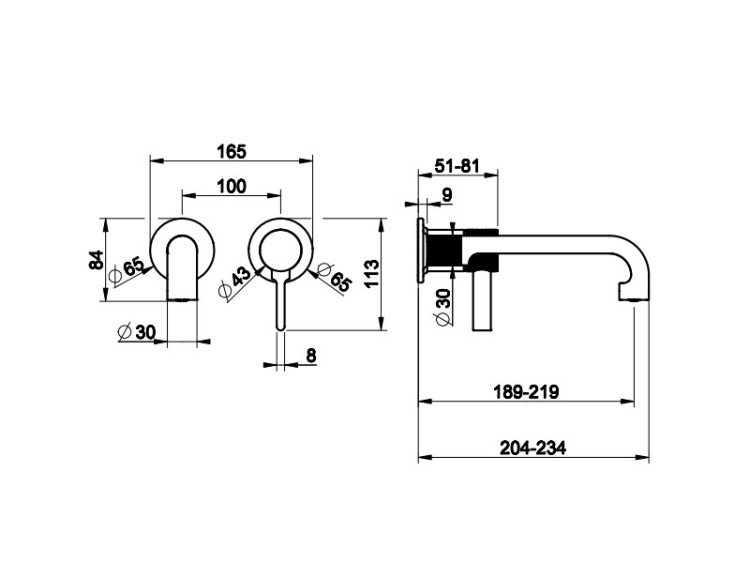 Смеситель для раковины, Gessi, Inciso, тип открывания воды-однорычажный, тип установки-встраиваемый в стену, отверстия для монтажа-2, высота, мм-113, вынос излива, мм-189-219, внутренняя часть-необходимо заказать, цвет-Black Metal PVD Смеситель для раковины, Gessi, Inciso, цвет-Black Metal PVD
