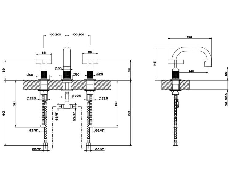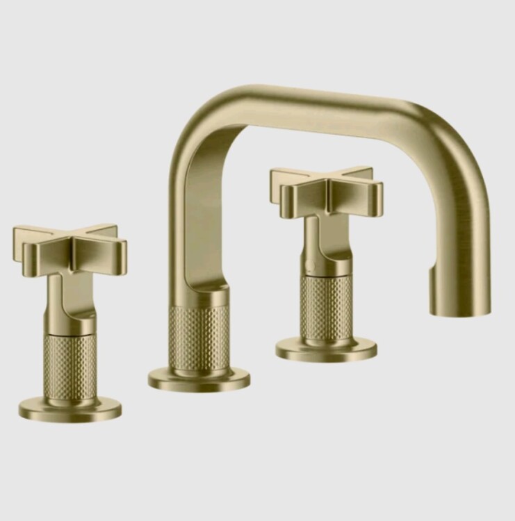 Смеситель для раковины, Gessi, Inciso, тип открывания воды-вентильный, тип регулирования воды-керамическая кран-букса, монтаж-на раковину/столешницу, отверстия для монтажа-3, высота, мм-145, вынос излива, мм-140, тип излива-неподвижный, донный клапан-отсутствует, тип подводки-гибкая, стандарт подвода воды-3/8", цвет-Brushed Brass PVD Смеситель для раковины, Gessi, Inciso, цвет-Brushed Brass PVD