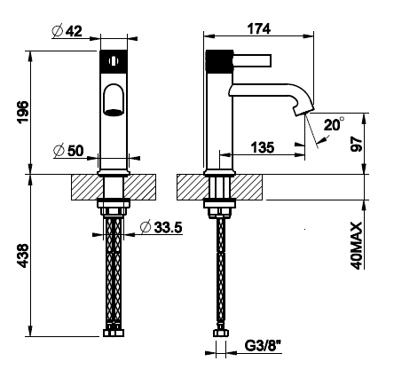 Смеситель для раковины, Gessi, Inciso, тип открывания воды-однорычажный, тип регулирования воды-керамический картридж, монтаж-на раковину/столешницу, отверстия для монтажа-1, высота, мм-195, вынос излива, мм-135, тип излива-неподвижный, донный клапан-отсутствует, тип подводки-гибкая, стандарт подвода воды-3/8", цвет-Copper PVD Смеситель для раковины, Gessi, Inciso, цвет-Copper PVD