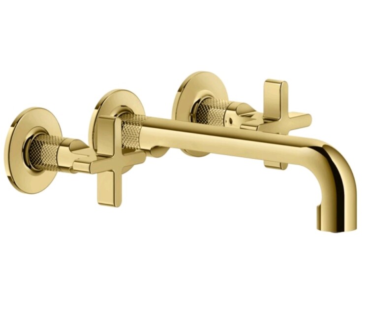 Смеситель для раковины, Gessi, Inciso, тип открывания воды-вентильный, тип регулирования воды-керамическая кран-букса, монтаж-настенный встраиваемый, отверстия для монтажа-3, высота, мм-85, вынос излива, мм-190-210, тип излива-неподвижный, донный клапан-отсутствует, тип подводки-жесткая, стандарт подвода воды-1/2", внутренняя часть-необходимо заказать, цвет-Gold PVD Смеситель для раковины, Gessi, Inciso, цвет-Gold PVD