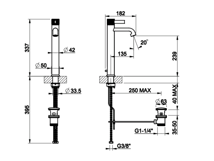 Смеситель для раковины, Gessi, Inciso, тип открывания воды-однорычажный, отверстия для монтажа-1, высота, мм-337, вынос излива, мм-135, тип излива-высокий, донный клапан-есть, тип подводки-гибкая, стандарт подвода воды-3/8", цвет-хром Смеситель для раковины, Gessi, Inciso, цвет-хром