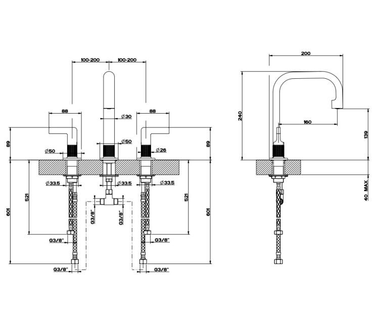 Смеситель для раковины, Gessi, Inciso, тип открывания воды-вентильный, тип регулирования воды-керамическая кран-букса, монтаж-на раковину/столешницу, отверстия для монтажа-3, высота, мм-240, вынос излива, мм-160, тип излива-неподвижный, донный клапан-отсутствует, тип подводки-гибкая, стандарт подвода воды-3/8", цвет-Warm Bronze Brushed PVD Смеситель для раковины, Gessi, Inciso, цвет-Warm Bronze Brushed PVD