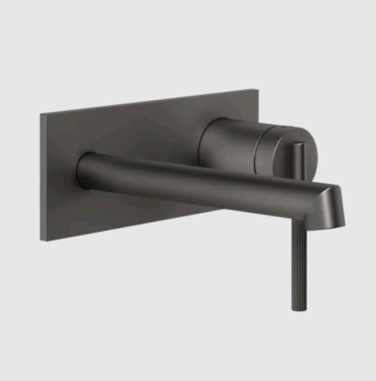 Смеситель для раковины, Gessi, Ingranaggio, тип открывания воды-однорычажный, тип регулирования воды-керамический картридж, монтаж-настенный встраиваемый, отверстия для монтажа-2, высота, мм-65, вынос излива, мм-130-160, тип излива-неподвижный, донный клапан-отсутствует, тип подводки-жесткая, внутренняя часть-необходимо заказать, цвет-Black Metal Brushed PVD Смеситель для раковины, Gessi, Ingranaggio, цвет-Black Metal Brushed PVD