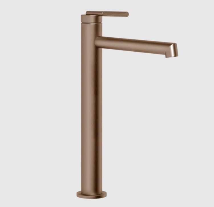 Смеситель для раковины, Gessi, Ingranaggio, тип открывания воды-однорычажный, тип регулирования воды-керамический картридж, монтаж-на раковину/столешницу, отверстия для монтажа-1, высота, мм-326, вынос излива, мм-174, тип излива-неподвижный, донный клапан-отсутствует, тип подводки-гибкая, стандарт подвода воды-3/8", цвет-Copper Brushed PVD Смеситель для раковины, Gessi, Ingranaggio, цвет-Copper Brushed PVD