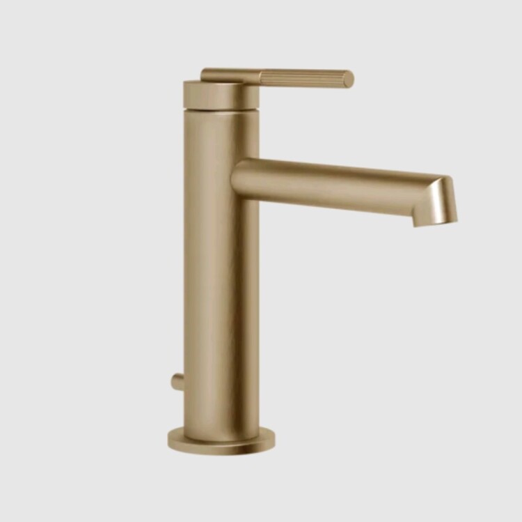 Смеситель для раковины, Gessi, Ingranaggio, тип открывания воды-однорычажный, тип регулирования воды-керамический картридж, монтаж-на раковину/столешницу, отверстия для монтажа-1, высота, мм-175, вынос излива, мм-128, тип излива-неподвижный, донный клапан-есть, тип подводки-гибкая, стандарт подвода воды-3/8", цвет-Warm Bronze Brushed PVD Смеситель для раковины, Gessi, Ingranaggio, цвет-Warm Bronze Brushed PVD