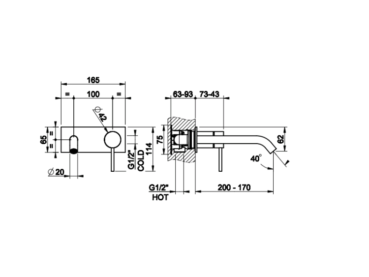 Смеситель для раковины, Gessi, Intreccio, тип открывания воды-однорычажный, тип установки-настенный, высота, мм-114, вынос излива, мм-200, стандарт подвода воды-1/2", внутренняя часть-необходимо заказать, цвет-Copper Brushed PVD Смеситель для раковины, Gessi, Intreccio, цвет-Copper Brushed PVD