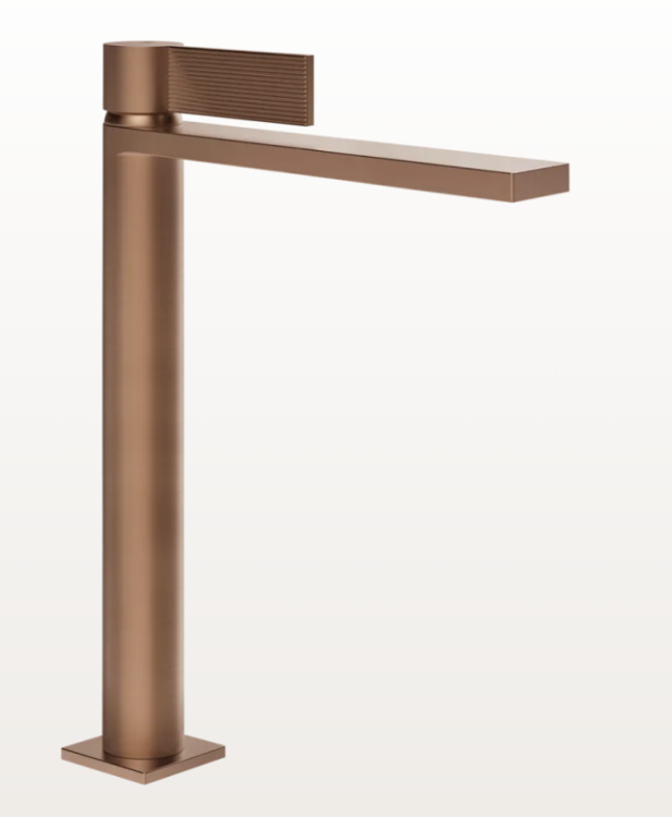 Смеситель для раковины, Gessi, Inverco Rigato, тип открывания воды-однорычажный, тип регулирования воды-керамический картридж, монтаж-на раковину/столешницу, отверстия для монтажа-1, высота, мм-321, вынос излива, мм-199, донный клапан-отсутствует, тип подводки-гибкая, стандарт подвода воды-3/8", с соединительными шлангами, цвет-Copper Brushed PVD Смеситель для раковины, Gessi, Inverco Rigato, цвет-Copper Brushed PVD