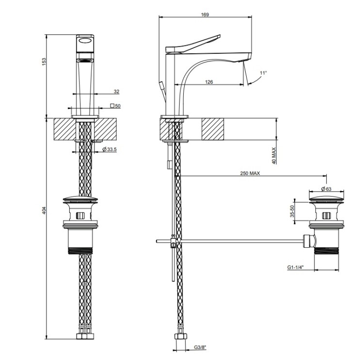 Смеситель для раковины, Gessi, Rilievo, тип открывания воды-однорычажный, тип регулирования воды-керамический картридж, монтаж-на раковину/столешницу, отверстия для монтажа-1, высота, мм-153, вынос излива, мм-126, тип излива-неподвижный, донный клапан-есть, тип подводки-гибкая, стандарт подвода воды-3/8", цвет-черный матовый Смеситель для раковины, Gessi, Rilievo, цвет-черный матовый