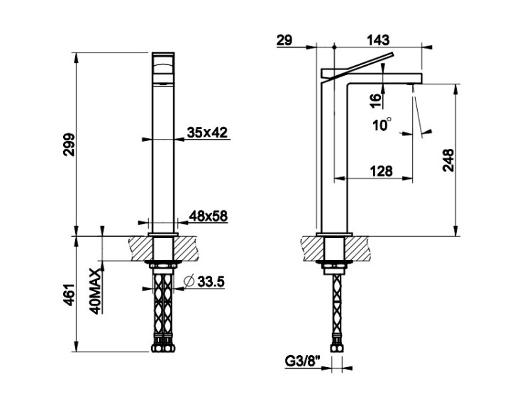Смеситель для раковины, Gessi, Rettangolo K, тип открывания воды-однорычажный, отверстия для монтажа-1, высота, мм-299, вынос излива, мм-128, тип подводки-гибкая, стандарт подвода воды-3/8", цвет-хром Смеситель для раковины, Gessi, Rettangolo K, цвет-хром