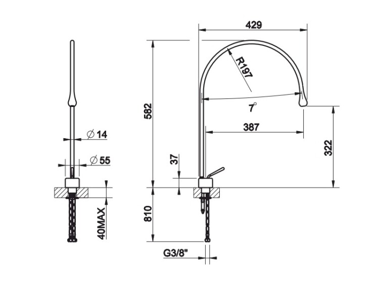 Смеситель для раковины, Gessi, Goссia, тип открывания воды-однорычажный, отверстия для монтажа-1, высота, мм-582, вынос излива, мм-387, радиус излива,мм-197, тип подводки-гибкая, стандарт подвода воды-3/8", цвет-Black XL Смеситель для раковины, Gessi, Goссia, цвет-Black XL