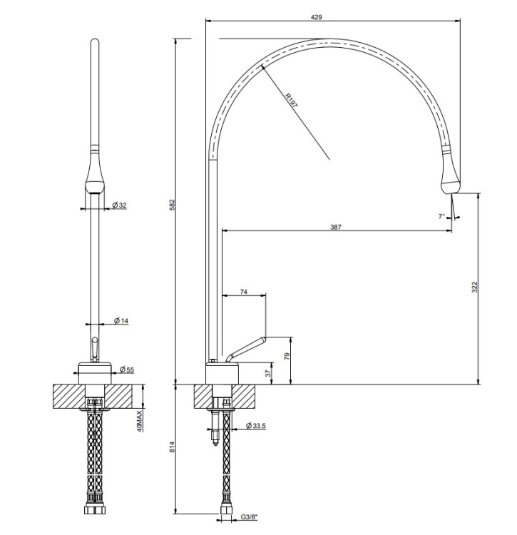 Смеситель для раковины, Gessi, Goссia, тип открывания воды-однорычажный джойстик, тип регулирования воды-керамический картридж, монтаж-на раковину/столешницу, отверстия для монтажа-1, высота, мм-582, вынос излива, мм-387, радиус излива,мм-197, тип излива-поворотный, донный клапан-отсутствует, тип подводки-гибкая, стандарт подвода воды-3/8", цвет-хром Смеситель для раковины, Gessi, Goссia, цвет-хром
