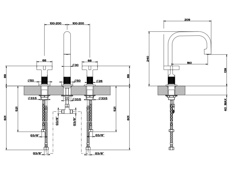 Смеситель для раковины, Gessi, Inciso, тип открывания воды-вентильный, тип регулирования воды-керамическая кран-букса, монтаж-на раковину/столешницу, отверстия для монтажа-3, высота, мм-240, вынос излива, мм-160, тип излива-неподвижный, донный клапан-отсутствует, тип подводки-гибкая, стандарт подвода воды-3/8", цвет-Finox Brushed Nickel Смеситель для раковины, Gessi, Inciso, цвет-Finox Brushed Nickel