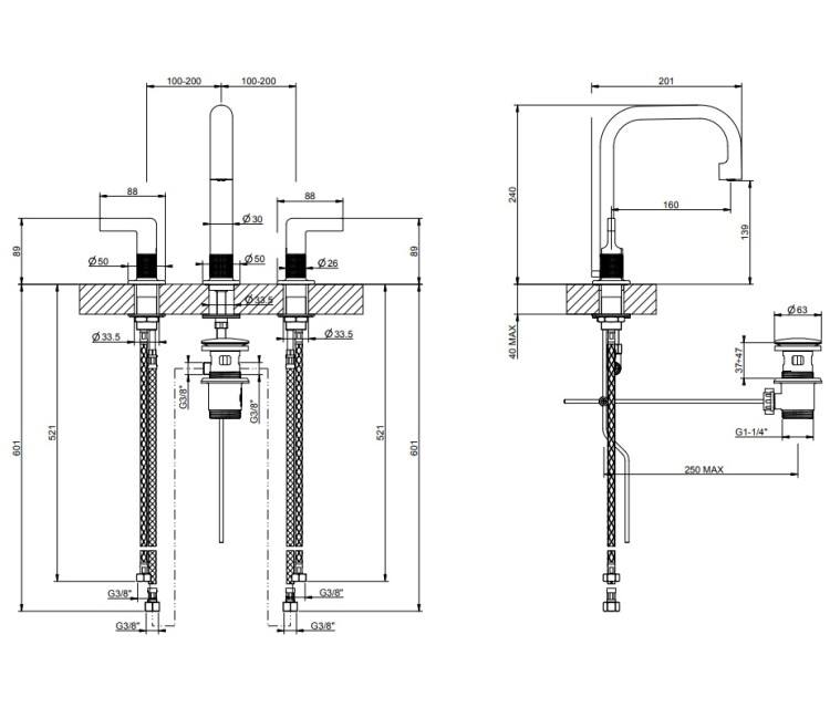Смеситель для раковины, Gessi, Inciso, тип открывания воды-вентильный, тип регулирования воды-керамическая кран-букса, монтаж-на раковину/столешницу, отверстия для монтажа-3, высота, мм-240, вынос излива, мм-160, тип излива-неподвижный, донный клапан-есть, тип подводки-гибкая, стандарт подвода воды-3/8", цвет-Finox Brushed Nickel Смеситель для раковины, Gessi, Inciso, цвет-Finox Brushed Nickel