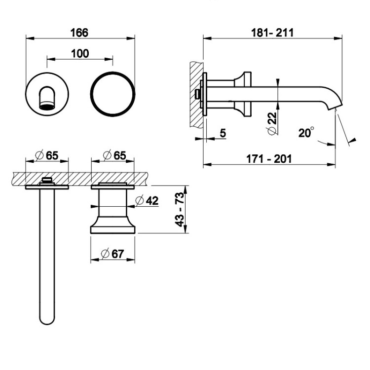 Смеситель для раковины, Gessi, Origini, тип открывания воды-однорычажный, в комплект входит отделочная вставка в цвет смесителя, можно комбинировать со вставками с различной отделкой, тип регулирования воды-керамический картридж, монтаж-настенный встраиваемый, отверстия для монтажа-2, высота, мм-67, вынос излива, мм-171-201, тип излива-неподвижный, донный клапан-отсутствует, тип подводки-жесткая, стандарт подвода воды-1/2", внутренняя часть-необходимо заказать, цвет-Agave matt Смеситель для раковины, Gessi, Origini, цвет-Agave matt