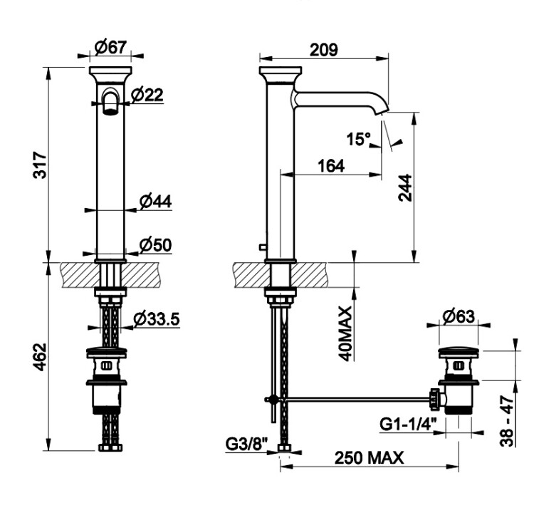 Смеситель для раковины, Gessi, Origini, тип открывания воды-однорычажный, в комплект входит отделочная вставка в цвет смесителя, можно комбинировать со вставками с различной отделкой, тип регулирования воды-керамический картридж, монтаж-на раковину/столешницу, отверстия для монтажа-1, высота, мм-317, вынос излива, мм-164, тип излива-неподвижный, донный клапан-есть, тип подводки-гибкая, стандарт подвода воды-3/8", цвет-Nickel PVD Смеситель для раковины, Gessi, Origini, цвет-Nickel PVD