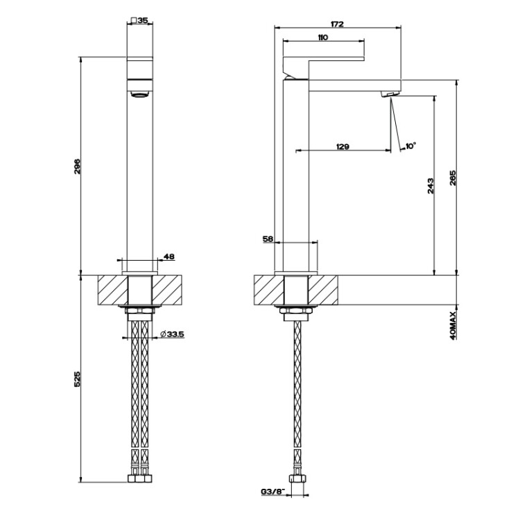 Смеситель для раковины, Gessi, Rettangolo, тип открывания воды-однорычажный, тип регулирования воды-керамический картридж, монтаж-на раковину/столешницу, отверстия для монтажа-1, высота, мм-296, вынос излива, мм-129, тип излива-неподвижный, донный клапан-отсутствует, тип подводки-гибкая, стандарт подвода воды-3/8", цвет-Black Metal Brushed PVD Смеситель для раковины, Gessi, Rettangolo, цвет-Black Metal Brushed PVD