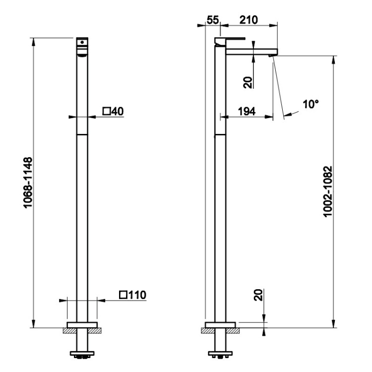 Смеситель для раковины, Gessi, Rettangolo, тип открывания воды-однорычажный, тип регулирования воды-керамический картридж, монтаж-напольный, отверстия для монтажа-1, высота, мм-1068-1148, вынос излива, мм-194, тип излива-неподвижный, донный клапан-отсутствует, тип подводки-жесткая, стандарт подвода воды-1/2", внутренняя часть-необходимо заказать, цвет-черный матовый Смеситель для раковины, Gessi, Rettangolo, цвет-черный матовый