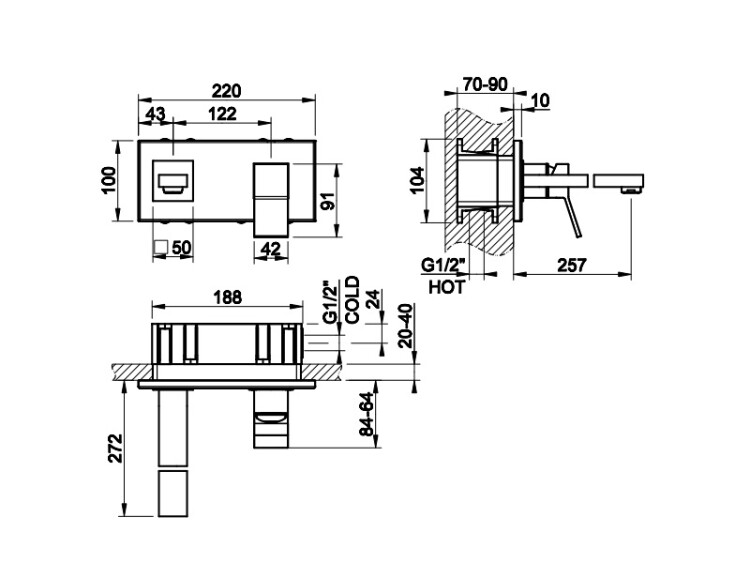 Смеситель для раковины, Gessi, Rettangolo K, тип открывания воды-однорычажный, тип установки-встраиваемый, вынос излива, мм-249, стандарт подвода воды-1/2", внутренняя часть-необходимо заказать, цвет-Black Metal PVD Смеситель для раковины, Gessi, Rettangolo K, цвет-Black Metal PVD