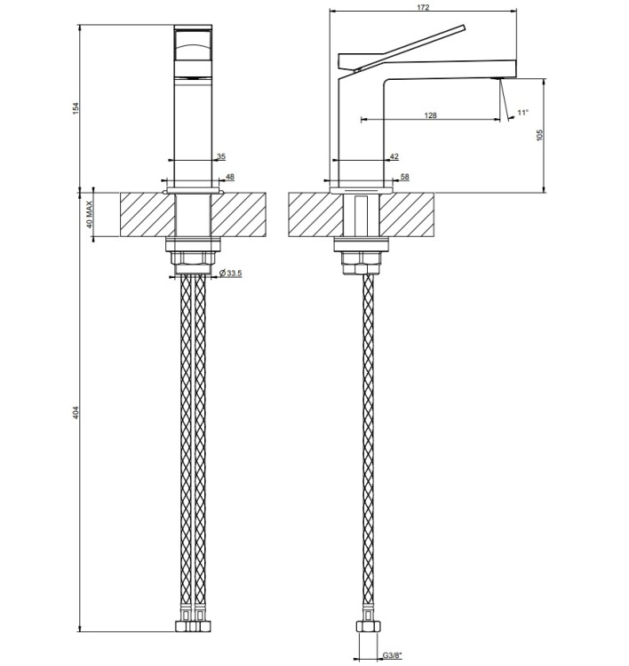 Смеситель для раковины, Gessi, Rettangolo K, тип открывания воды-однорычажный, тип регулирования воды-керамический картридж, монтаж-на раковину/столешницу, отверстия для монтажа-1, высота, мм-154, вынос излива, мм-128, тип излива-неподвижный, донный клапан-отсутствует, тип подводки-гибкая, стандарт подвода воды-3/8", цвет-Nickel PVD Смеситель для раковины, Gessi, Rettangolo K, цвет-Nickel PVD