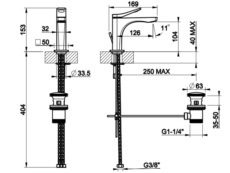 Смеситель для раковины, Gessi, Rilievo, тип открывания воды-однорычажный, отверстия для монтажа-1, высота, мм-153, вынос излива, мм-126, донный клапан-есть, тип подводки-гибкая, стандарт подвода воды-3/8", цвет-Copper PVD Смеситель для раковины, Gessi, Rilievo, цвет-Copper PVD