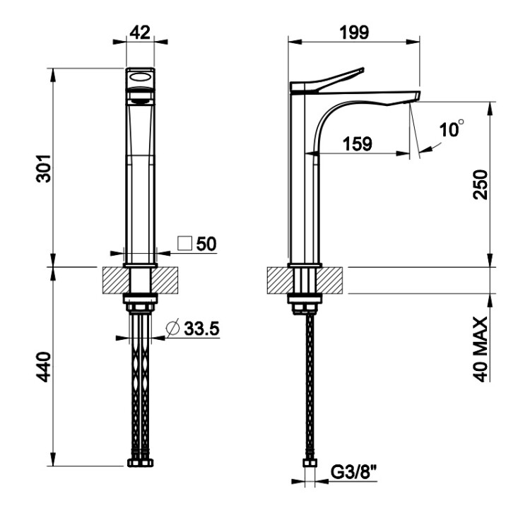 Смеситель для раковины, Gessi, Rilievo, тип открывания воды-однорычажный, тип регулирования воды-керамический картридж, монтаж-на раковину/столешницу, отверстия для монтажа-1, высота, мм-301, вынос излива, мм-159, тип излива-неподвижный, донный клапан-отсутствует, тип подводки-гибкая, стандарт подвода воды-3/8", цвет-Finox Brushed Nickel Смеситель для раковины, Gessi, Rilievo, цвет-Finox Brushed Nickel