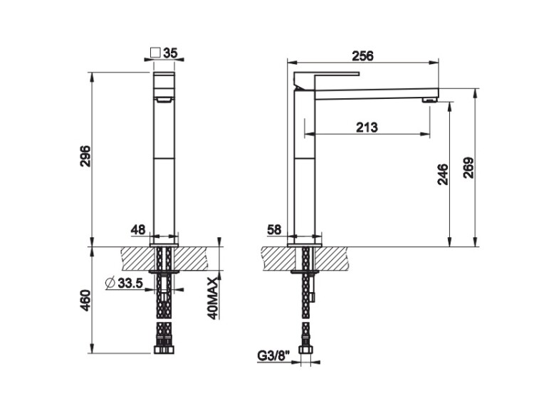 Смеситель для раковины, Gessi, Rettangolo, тип открывания воды-однорычажный, отверстия для монтажа-1, высота, мм-296, вынос излива, мм-213, тип излива-высокий, тип подводки-гибкая, стандарт подвода воды-3/8", цвет-хром, без донного клапана Смеситель для раковины, Gessi, Rettangolo, цвет-хром