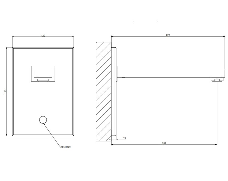 Смеситель для раковины, Gessi, Sensor Taps, тип открывания воды-бесконтактный/электронный, тип регулирования воды-электронный датчик, монтаж-настенный встраиваемый, отверстия для монтажа-1, высота, мм-173, вынос излива, мм-207, тип излива-неподвижный, донный клапан-отсутствует, тип подводки-жесткая, стандарт подвода воды-1/2", внутренняя часть-необходимо заказать, цвет-хром Смеситель для раковины, Gessi, Sensor Taps, цвет-хром