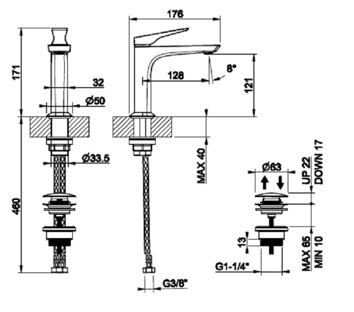 Смеситель для раковины, Gessi, Ventaglio, тип открывания воды-однорычажный, тип регулирования воды-керамический картридж, монтаж-на раковину/столешницу, отверстия для монтажа-1, высота, мм-171, вынос излива, мм-128, тип излива-неподвижный, донный клапан-есть, "Stop&Go", тип подводки-гибкая, стандарт подвода воды-3/8", цвет-Black Metal Br. PVD Смеситель для раковины, Gessi, Ventaglio, цвет-Black Metal Br. PVD
