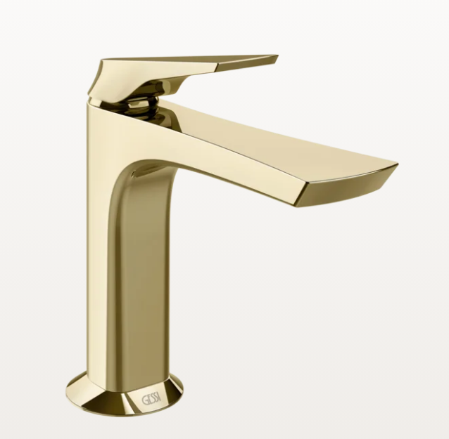 Смеситель для раковины, Gessi, Ventaglio, тип открывания воды-однорычажный, тип регулирования воды-керамический картридж, монтаж-на раковину/столешницу, отверстия для монтажа-1, высота, мм-171, вынос излива, мм-128, тип излива-неподвижный, донный клапан-есть, тип подводки-гибкая, стандарт подвода воды-3/8", цвет-Brass PVD Смеситель для раковины, Gessi, Ventaglio, цвет-Brass PVD