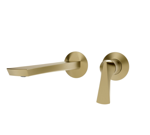 Смеситель для раковины, Gessi, Ventaglio, тип открывания воды-однорычажный, тип регулирования воды-керамический картридж, монтаж-настенный встраиваемый, отверстия для монтажа-2, высота, мм-105, вынос излива, мм-210, тип излива-неподвижный, донный клапан-отсутствует, тип подводки-жесткая, стандарт подвода воды-1/2", внутренняя часть-необходимо заказать, цвет-Brushed Brass PVD Смеситель для раковины, Gessi, Ventaglio, цвет-Brushed Brass PVD