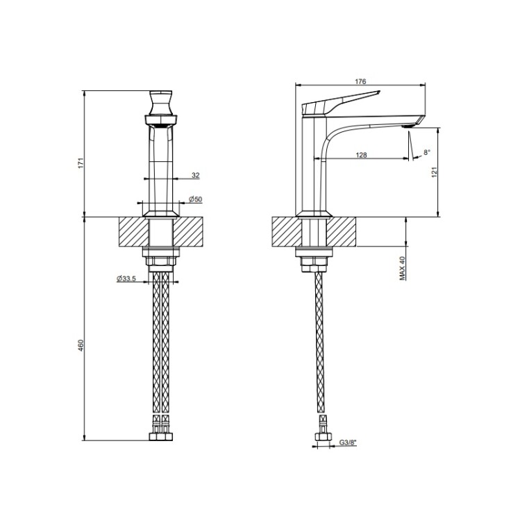 Смеситель для раковины, Gessi, Ventaglio, тип открывания воды-однорычажный, тип регулирования воды-керамический картридж, монтаж-на раковину/столешницу, отверстия для монтажа-1, высота, мм-171, вынос излива, мм-128, тип излива-неподвижный, донный клапан-отсутствует, тип подводки-гибкая, стандарт подвода воды-3/8", цвет-черный матовый Смеситель для раковины, Gessi, Ventaglio, цвет-черный матовый