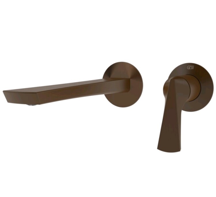 Смеситель для раковины, Gessi, Ventaglio, тип открывания воды-однорычажный, тип регулирования воды-керамический картридж, монтаж-настенный встраиваемый, отверстия для монтажа-2, высота, мм-105, вынос излива, мм-210, тип излива-неподвижный, донный клапан-отсутствует, тип подводки-жесткая, стандарт подвода воды-1/2", внутренняя часть-необходимо заказать, цвет-Dark Bronze Смеситель для раковины, Gessi, Ventaglio, цвет-Dark Bronze