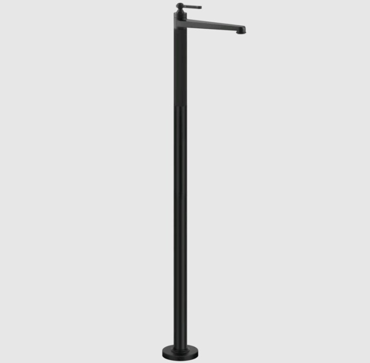 Смеситель для раковины, Gessi, VENTI20, тип открывания воды-однорычажный, тип регулирования воды-керамический картридж, монтаж-напольный, отверстия для монтажа-1, высота, мм-1068-1148, вынос излива, мм-208, тип излива-неподвижный, донный клапан-отсутствует, тип подводки-жесткая, стандарт подвода воды-1/2", внутренняя часть-необходимо заказать, цвет-черный матовый Смеситель для раковины, Gessi, VENTI20, цвет-черный матовый