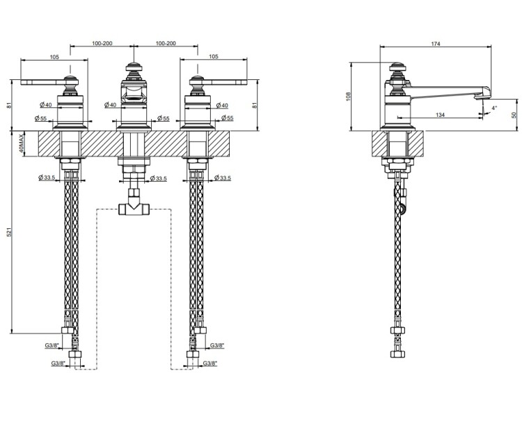 Смеситель для раковины, Gessi, VENTI20, тип открывания воды-вентильный, тип регулирования воды-керамическая кран-букса, монтаж-на раковину/столешницу, отверстия для монтажа-3, высота, мм-108, вынос излива, мм-134, тип излива-неподвижный, донный клапан-отсутствует, тип подводки-гибкая, стандарт подвода воды-3/8", цвет-Warm Bronze PVD Смеситель для раковины, Gessi, VENTI20, цвет-Warm Bronze PVD