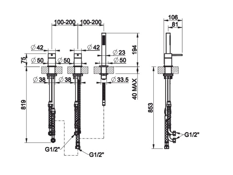 Смеситель для ванны и душа, Gessi, BATH316, отверстия для монтажа-3, цвет-Copper Brushed PVD, для наполнения через слив-перелив, в комплекте-переключатель, вытяжной ручной душ, форма душнвой лейки-цилиндрическая, шланг,мм-1500 Смеситель для ванны и душа, Gessi, BATH316, цвет-Copper Brushed PVD