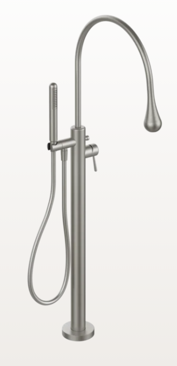 Смеситель для ванны и душа, Gessi, GOCCIA, тип открывания воды-однорычажный, тип регулирования воды-керамический картридж, монтаж-напольный, отверстия для монтажа-1, вынос излива, мм-387, ручной душ-в комплекте, внутренняя часть-необходимо заказать, цвет-Brushed Chrome Смеситель для ванны и душа, Gessi, GOCCIA, цвет-Brushed Chrome