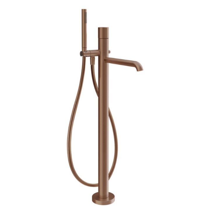Смеситель для ванны и душа, Gessi, Habito, тип открывания воды-однорычажный, тип регулирования воды-керамический картридж, монтаж-напольный, отверстия для монтажа-1, вынос излива, мм-260, тип излива-поворотный, ручной душ-в комплекте, внутренняя часть-необходимо заказать, цвет-Copper Brushed PVD Смеситель для ванны и душа, Gessi, Habito, цвет-Copper Brushed PVD