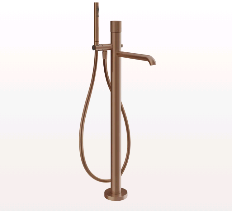 Смеситель для ванны и душа, Gessi, Habito Rigato, тип открывания воды-однорычажный, тип регулирования воды-керамический картридж, монтаж-напольный, отверстия для монтажа-1, вынос излива, мм-260, тип излива-неподвижный, ручной душ-в комплекте, внутренняя часть-необходимо заказать, цвет-Copper Brushed PVD Смеситель для ванны и душа, Gessi, Habito Rigato, цвет-Copper Brushed PVD