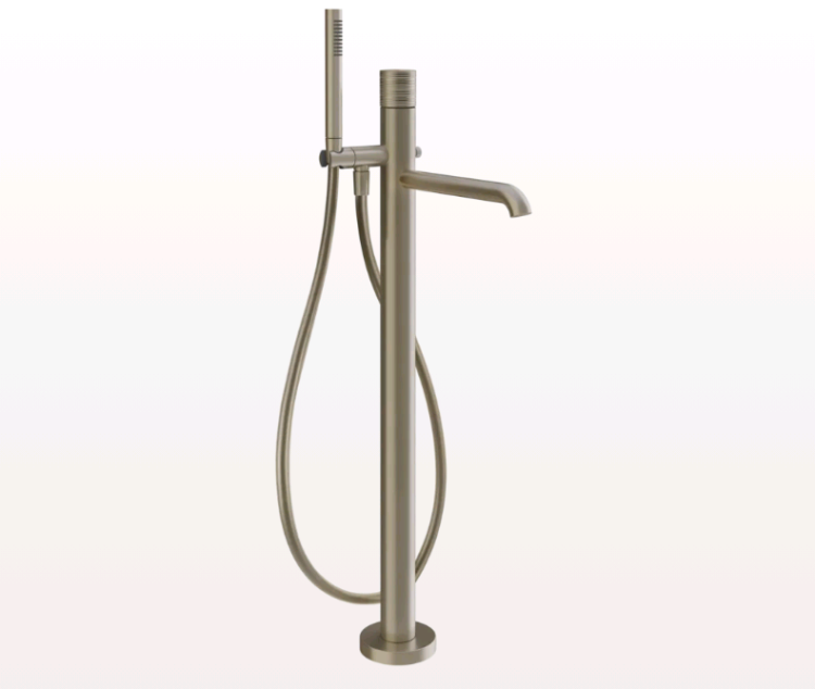 Смеситель для ванны и душа, Gessi, Habito Trame, тип открывания воды-однорычажный, тип регулирования воды-керамический картридж, монтаж-напольный, отверстия для монтажа-1, вынос излива, мм-260, ручной душ-в комплекте, внутренняя часть-необходимо заказать, цвет-Finox Brushed Nickel Смеситель для ванны и душа, Gessi, Habito Trame, цвет-Finox Brushed Nickel