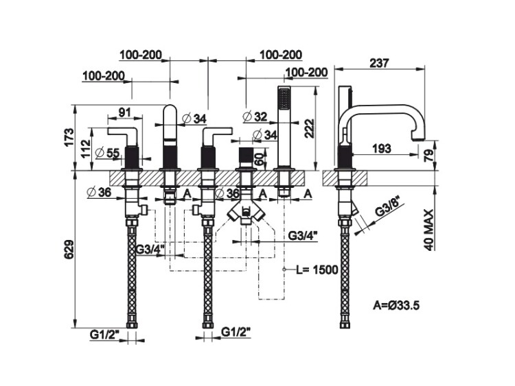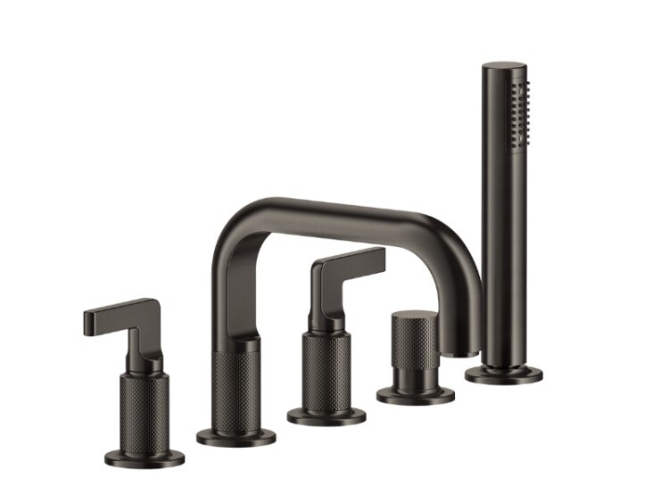Смеситель для ванны и душа, Gessi, Inciso, тип открывания воды-двухрычажный, тип установки-на борт ванны, отверстия для монтажа-5, вынос излива, мм-193, цвет-хром, в комплекте-переключатель, ручной душ-цилиндрический, диаметр,мм-32, шланг,мм-1500 Смеситель для ванны и душа, Gessi, Inciso, цвет-хром