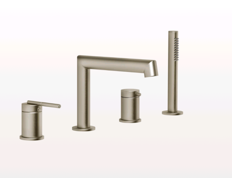 Смеситель для ванны и душа, Gessi, Ingranaggio, тип открывания воды-однорычажный, тип регулирования воды-керамический картридж, монтаж-на борт ванны, отверстия для монтажа-4, излив-каскадный, вынос излива, мм-190, ручной душ, девиатор, шланг-в комплекте, цвет--Finox Brushed Nickel Смеситель для ванны и душа, Gessi, Ingranaggio, цвет-Finox Brushed Nickel