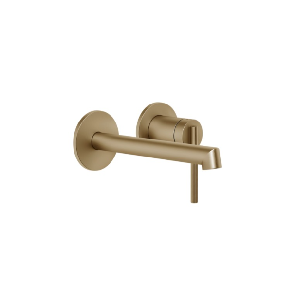 Смеситель для ванны и душа, Gessi, Ingranaggio, тип открывания воды-однорычажный, монтаж-настенный встраиваемый, отверстия для монтажа-2, вынос излива, мм-160, тип излива-неподвижный, внутренняя часть-необходимо заказать, без донного клапана, цвет-Warm Bronze Brushed PVD Смеситель для ванны и душа, Gessi, Ingranaggio, цвет-Warm Bronze Brushed PVD