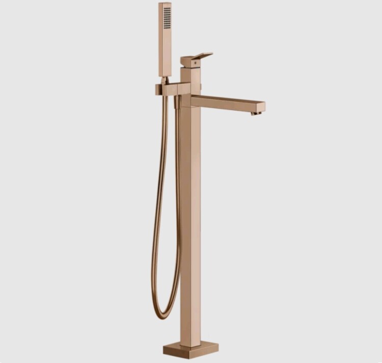 Смеситель для ванны и душа, Gessi, Rettangolo K, тип открывания воды-однорычажный, тип регулирования воды-керамический картридж, монтаж-напольный, отверстия для монтажа-1, вынос излива, мм-245, тип излива-неподвижный, одноструйный ручной душ-в комплекте, внутренняя часть-необходимо заказать, цвет-Copper PVD Смеситель для ванны и душа, Gessi, Rettangolo K, цвет-Copper PVD