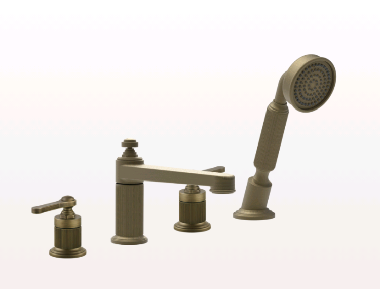 Смеситель для ванны, Gessi, VENTI20, тип открывания воды-двухвентильный, тип регулирования воды-керамическая кран-букса, монтаж-на борт ванны, отверстия для монтажа-4, вынос излива, мм-190, ручной душ-есть (с защитой от известкового налёта), с переключателем, шланг-есть, длина шланга,мм-1500, цвет-Antique Brass Смеситель для ванны и душа, Gessi, VENTI20, цвет-Antique Brass