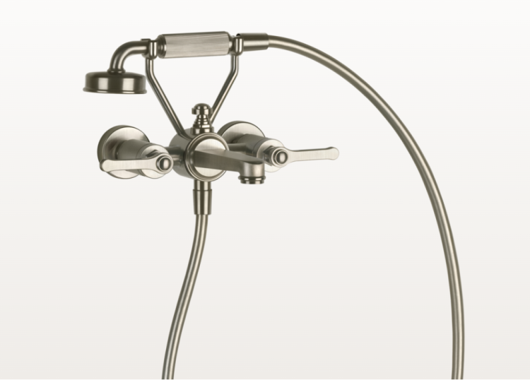 Смеситель для ванны и душа, Gessi, VENTI20, тип открывания воды-вентильный, тип регулирования воды-керамическая кран-букса, монтаж-настенный, отверстия для монтажа-2, вынос излива, мм-220, ручной душ-в комплекте, с переключателем ванна-душ, подводом воды и держателем лейки, внутренняя часть-необходимо заказать, цвет-Finox Brushed Nickel Смеситель для ванны и душа, Gessi, VENTI20, цвет-Finox Brushed Nickel