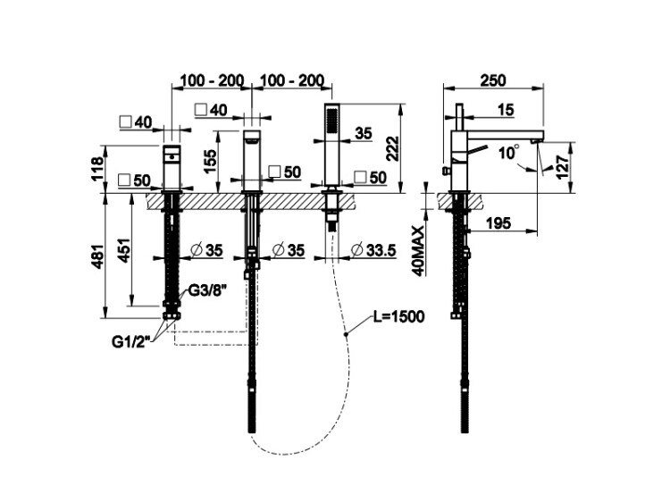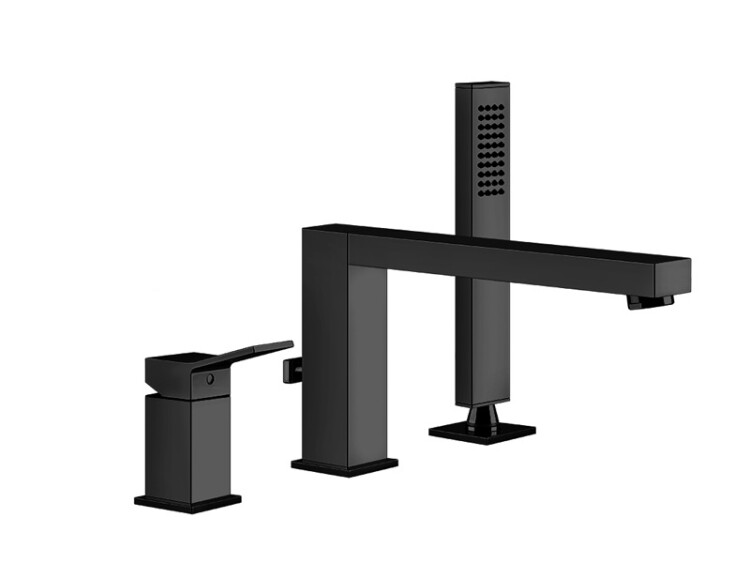 Смеситель для ванны и душа, Gessi, Rettangolo K, тип открывания воды-однорычажный, отверстия для монтажа-3, вынос излива, мм-195, цвет-Black XL, в комплекте-переключатель, встроенный в излив, шланг,мм-1500, убирающаяся душевая лейка, форма душевой лейки-прямоугольная Смеситель для ванны и душа, Gessi, Rettangolo K, цвет-Black XL