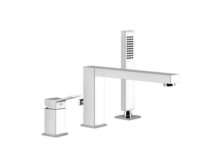Смеситель для ванны и душа, Gessi, Rettangolo K, тип открывания воды-однорычажный, отверстия для монтажа-3, вынос излива, мм-195, цвет-хром, в комплекте-переключатель, встроенный в излив, шланг,мм-1500, убирающаяся душевая лейка, форма душевой лейки-прямоугольная Смеситель для ванны и душа, Gessi, Rettangolo K, цвет-хром