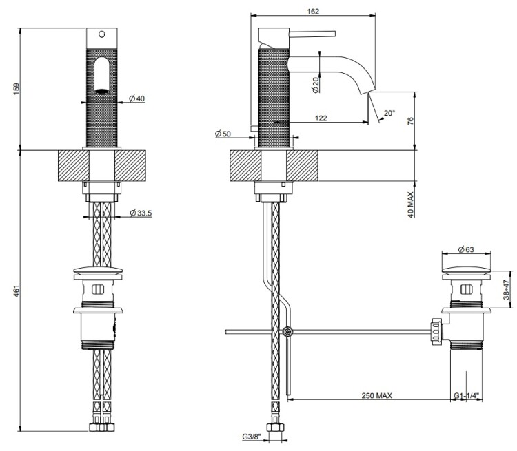 Смеситель для раковины, Gessi, 316 Cesello, тип открывания воды-однорычажный, тип регулирования воды-керамический картридж, монтаж-на раковину/столешницу, отверстия для монтажа-1, высота, мм-159, вынос излива, мм-122, тип излива-неподвижный, донный клапан-есть, тип подводки-гибкая, стандарт подвода воды-3/8", цвет-Steel Brushed Смеситель для раковины, Gessi, 316 Cesello, цвет-Steel Brushed