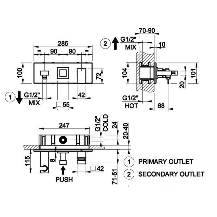 Смеситель для душа, Gessi, Rettangolo, на 2 потребителя, тип открывания воды-однорычажный, тип регулирования воды-керамический картридж, монтаж-настенный встраиваемый, отверстия для монтажа-1, в комплекте-переключатель, держатель ручного душа с подводом воды, необходимо заказать-внутренняя часть, ручной душ, шланг, цвет-хром Смеситель для душа, Gessi, Rettangolo, на 2 потребителя, цвет-хром (старый арт. 44910/031)